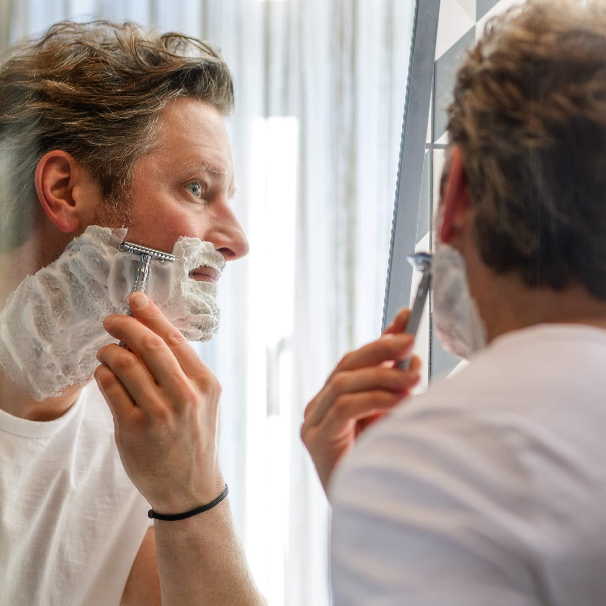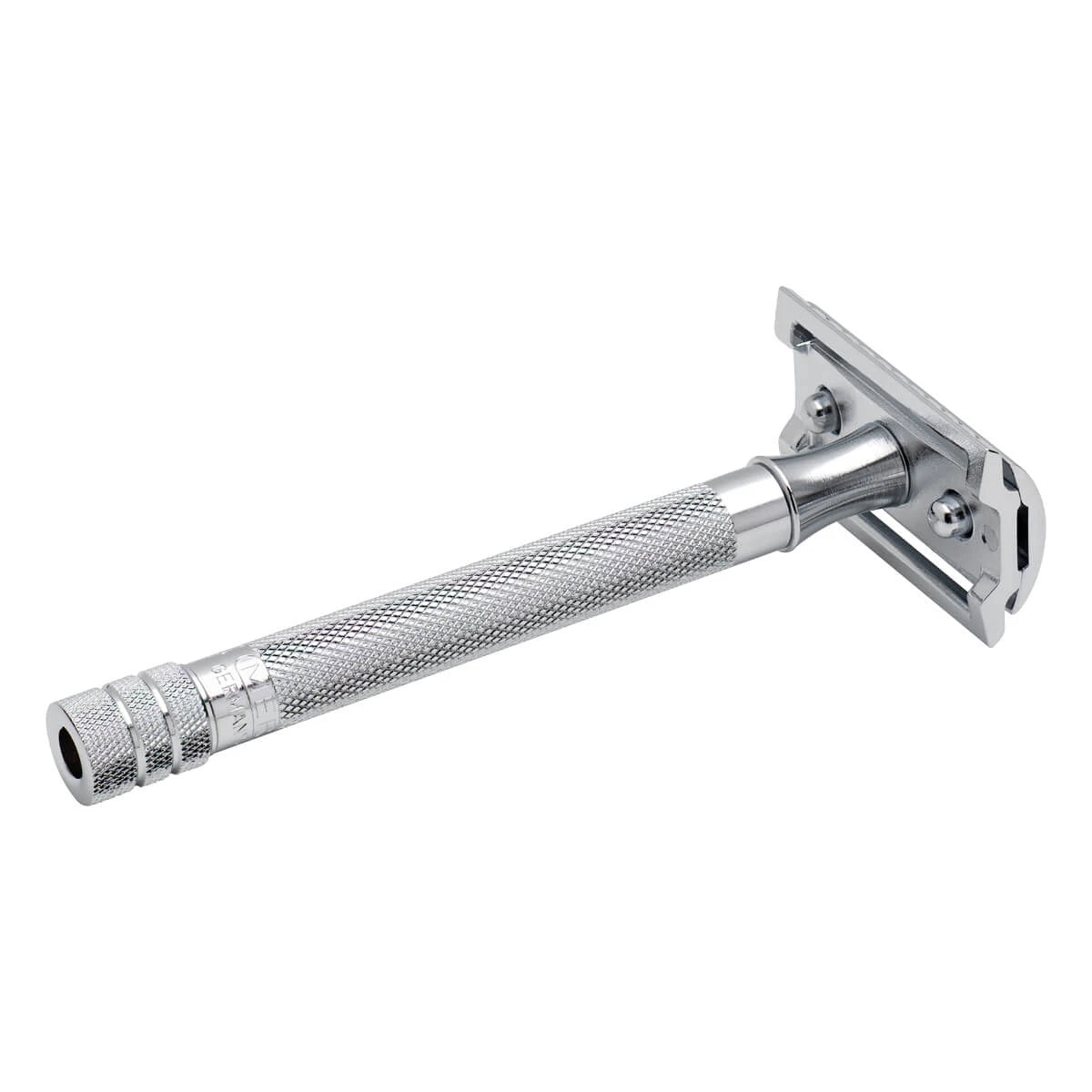 This Double Edge is made of solid steel and designed with an elegant grooved pattern that ensures excellent grip - even when your fingers are wet. The longer handle provides extra control and comfort, especially for those who prefer a more balanced Shaver in the hand.